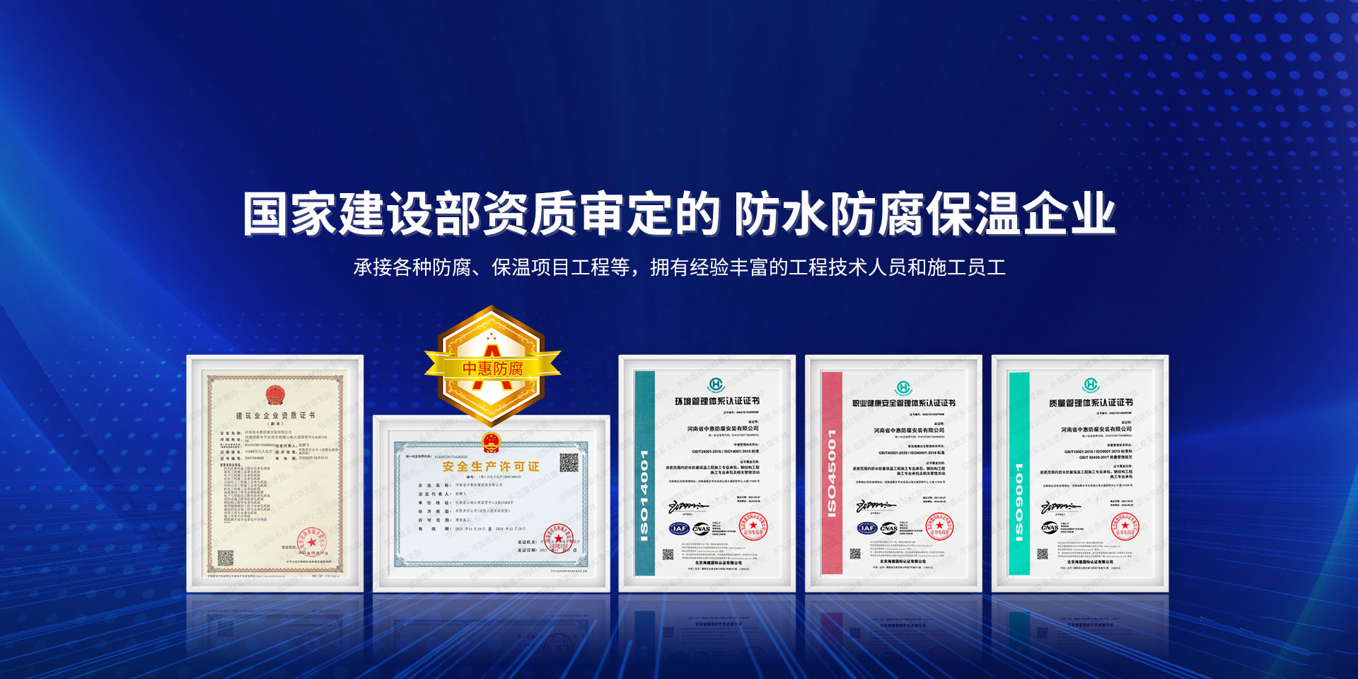 公司經營范圍:防水防腐保溫工程;消防設施工程;建筑裝修裝飾工程;建筑機電安裝工程;電力工程;建筑工程;石油化工工程;工業清洗工程;油罐清洗工程;鋼結構工程;環保工程;模板腳手架工程;電纜防火封堵、防污閃噴涂、外墻外保溫工程;各類施工勞務作業;設備維修、船舶鉚焊、涂裝;電力工程材料、建材、防水材料、防火材料、防腐保溫材料銷售,并相繼通過了GB/T19001-2008idtISO9001:2008GB/T50430-2007質量管理體系認證證書。GB/T24001-2004idtISO14001:2004環境管理體系認證證書。GB/T28001-2011idtOHSAS18001:2007職業健康安全管理體系認證證書。公司是中國防腐蝕于防護協會、中國施工企業管理協會、電力協會和中國鋼結構防水協會會員單位。 公司的經營業務涵蓋了石油、化工、電力、冶金、煤炭、船舶、國防、燃氣、水利、環保、交通運輸、航空及國防軍工和輕紡市政等行業的防腐保溫絕熱設備。鋼結構安裝、防火、防水、金屬噴鍍、聚脲噴繪、陰極保護、防滲透堵漏、玻璃鋼及各種磚版材料襯里、橡膠襯里、煙氣硫和耐酸溶劑腐蝕等工程施工。公司連續十年榮獲“省市先進施工企業”“安全生產先進單位”“重合同,守信用企業”和“AA***資質企業”的稱號。2000年被命名為市級文明單位,2002年被國家工商行政管理局命名為“重合同,守信用的企業”、被中國工業防腐蝕技術協會命名為“防腐蝕企業,能源節約及環境保護領域有豐富的經驗和***的業績。工程一次交驗合格率100%。其中攀枝花鋼鐵公司煉鐵廠四號高爐及熱風爐防腐工程、上海寶鋼公司煤氣柜防腐工程、撫順石油一廠裝置防腐項目、齊魯石化公司稀烴廠高塔防腐工程、吉林化學工業公司煉油廠油罐防腐工程、天津石化熱電廠六號爐頂棚聯絡管保溫工程、大慶油田(太倉)力神泵業工程、中國化學工程第十一建設工程、中原油田勘探局工程、中國石化銷售有限公司華北分部、魯皖輸油管道工程、貴州開磷息烽合成氨工程、陜西黃陵煤化工程、中國石油天然氣西部管道塔里木輸油工程、邯鋼集團邯寶鋼鐵公司煉鐵工程、德州供電工程、吉寶(南通)船廠工程,偃師華潤熱力工程、鄭州熱力總公司。 河南省中惠防腐安裝有限公司愿以豐富的施工經驗,***的技術,***的設備,***的管理,***的服務,竭誠為國內外廣大的用戶提供***滿意、******的工程作品。 我公司愿與國內外同仁一道,團結協作,共同推進防腐蝕行業發展! 公司地址:河南省長垣縣建設路北段360號 固定電話:0373-8866488 郵編:453400 網址:http://www_zhff_com_cn.shkela.com